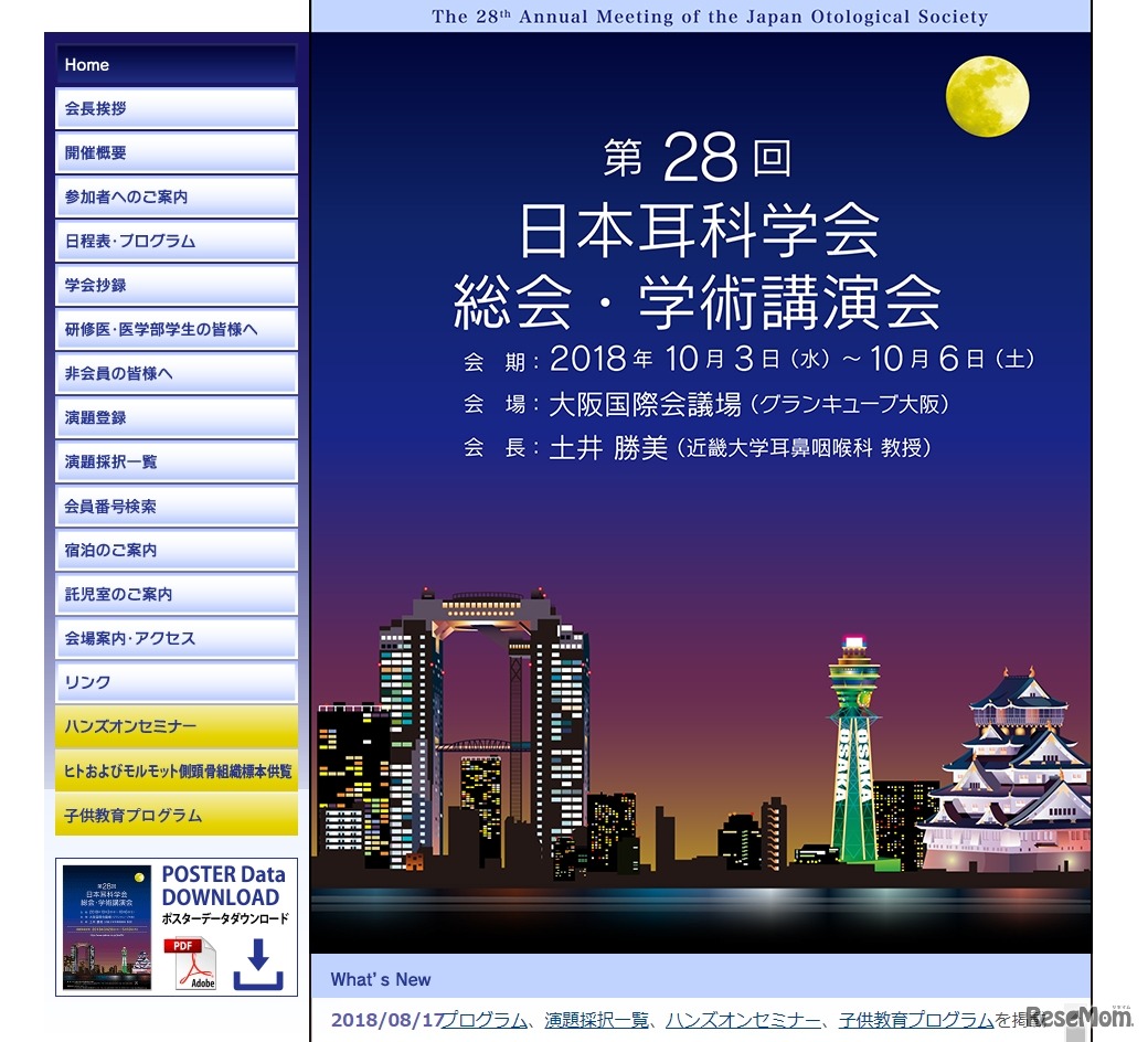 近畿大学医学部耳鼻咽喉科学教室は新潟大学医学部分子生理学分野と共催で、小中学生を対象とした「子供教育プログラム―耳の構造と仕組み―」を2018年10月6日に大阪国際会議場(グランキューブ大阪)で開催する。参加費は無料で、事前申込みが必要。