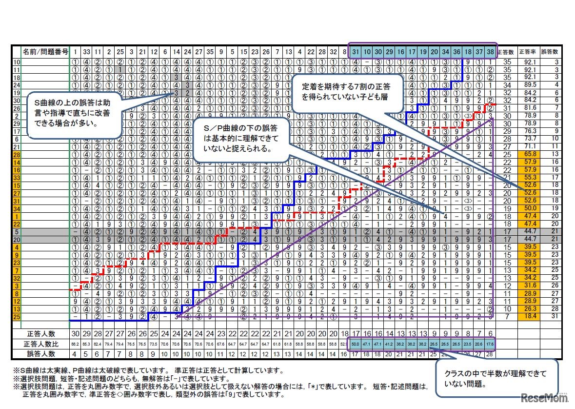 【全国学力テスト】S-P表分析で授業改善や習熟度別学習…文科省が提供 3枚目の写真・画像