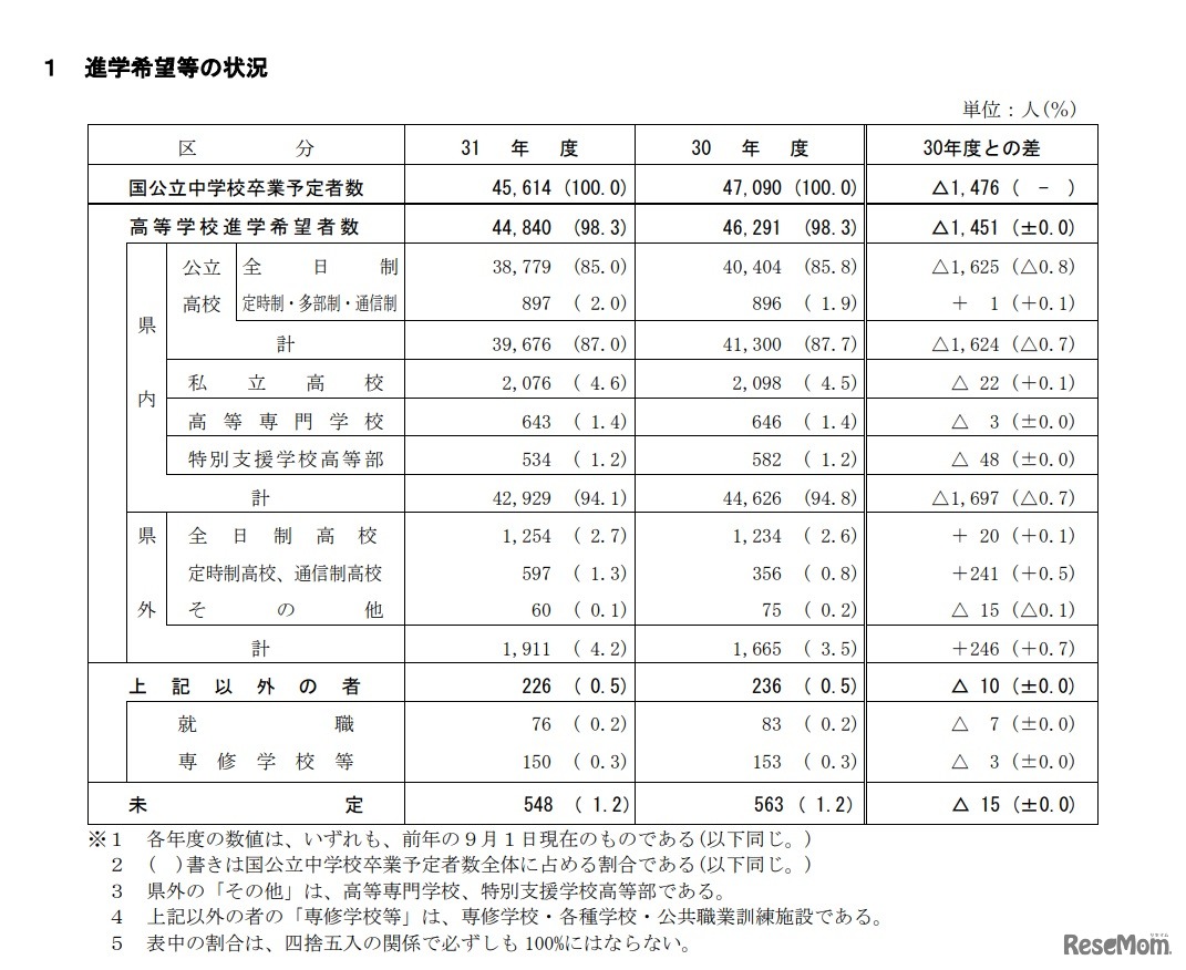 兵庫県教育委員会は2018年9月28日、平成31年度(2019年度)公立高校進学希望者数等調査結果を発表した。9月1日現在、高校進学希望率は前年度(2018年度)と同じ98.3%。希望倍率は、兵庫(創造科学科)が3.2倍でもっとも高い。