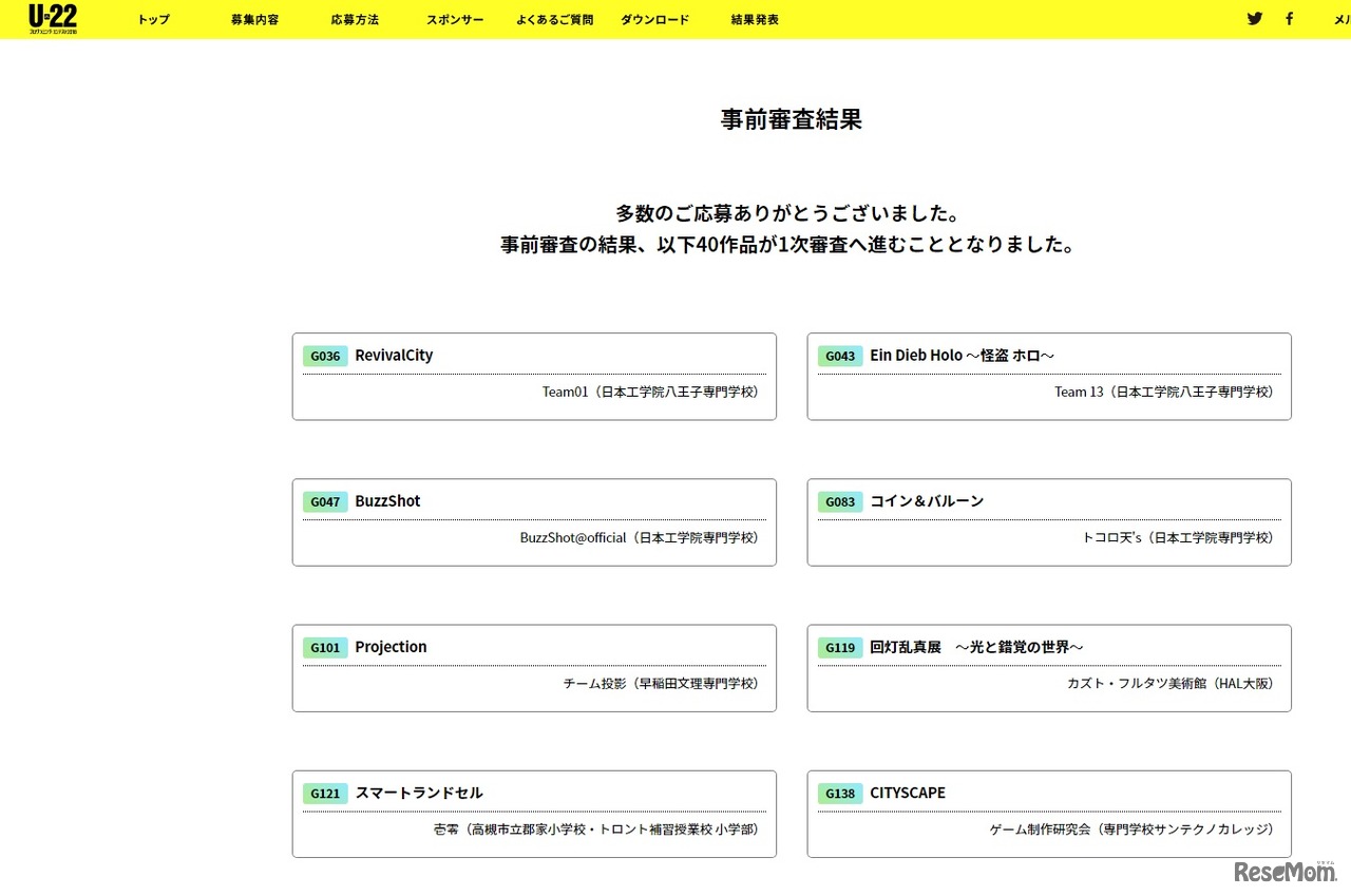 U-22プログラミング・コンテスト実行委員会は、「U-22プログラミング・コンテスト2018」に応募があった460作品の中から事前審査を通過した40作品を発表した。今後、一次審査会で16作品程度まで絞り込まれた後、最終審査会にて経済産業大臣賞など各賞が決定する。