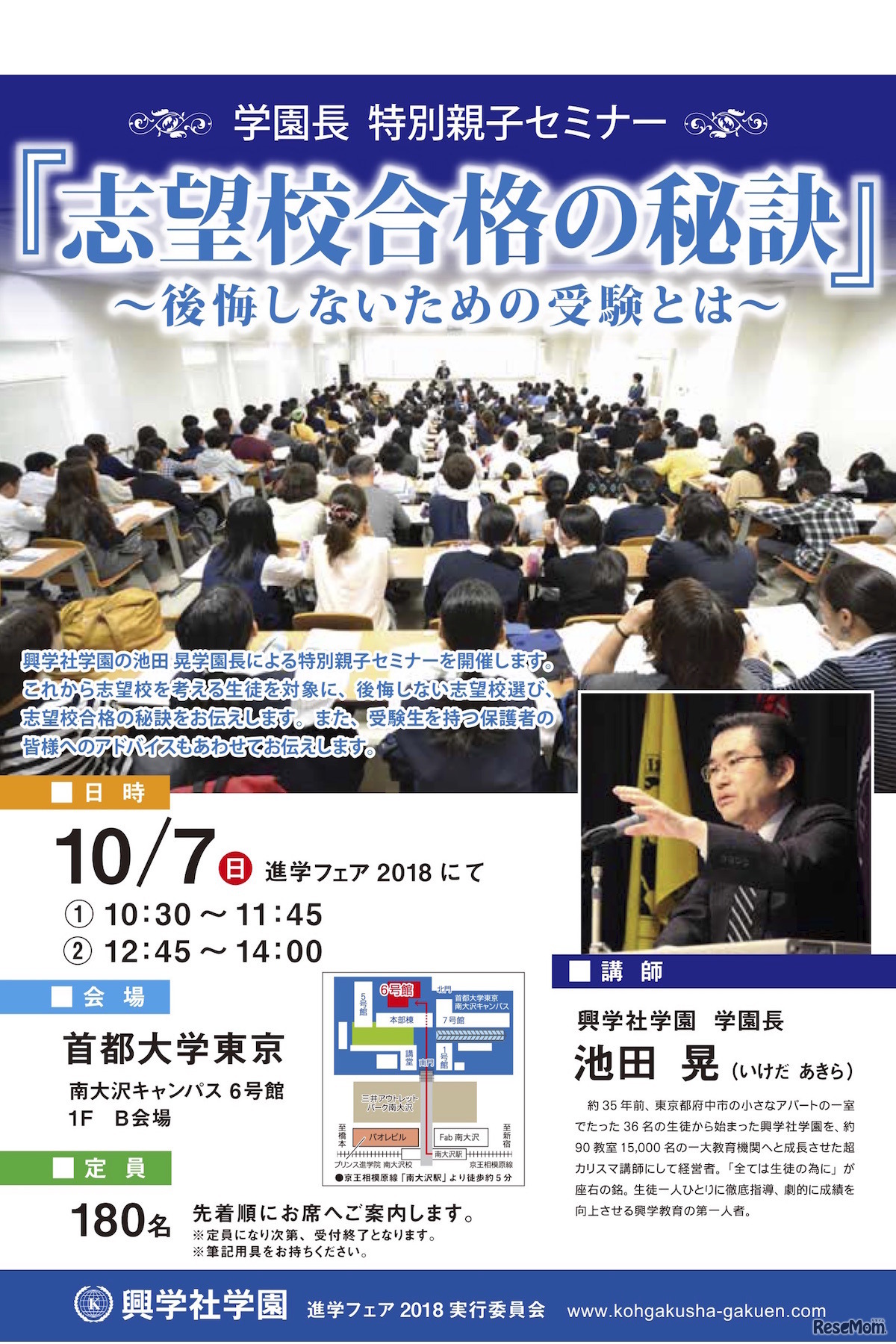 画像出典:興学社学園 「進学フェア2018」にて開催される特別親子セミナー