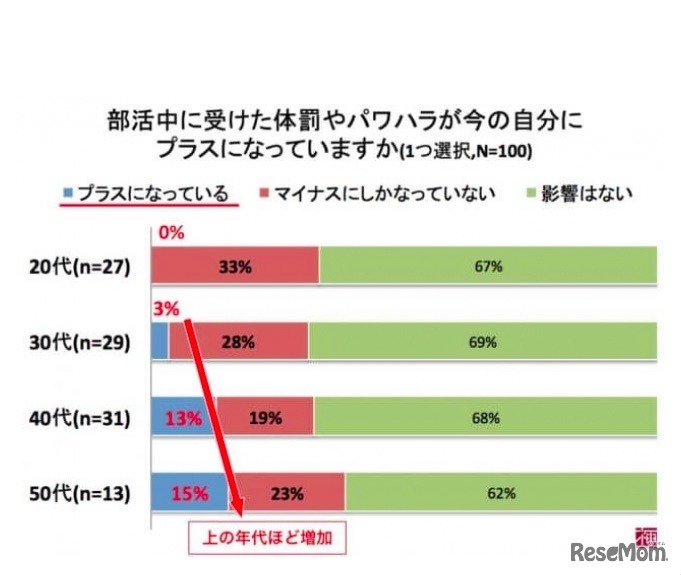 画像出典:ホワイトボックス「学生時代の部活動の実態」調査 部活中に受けた体罰やパワハラが今の自分にプラスになっているか