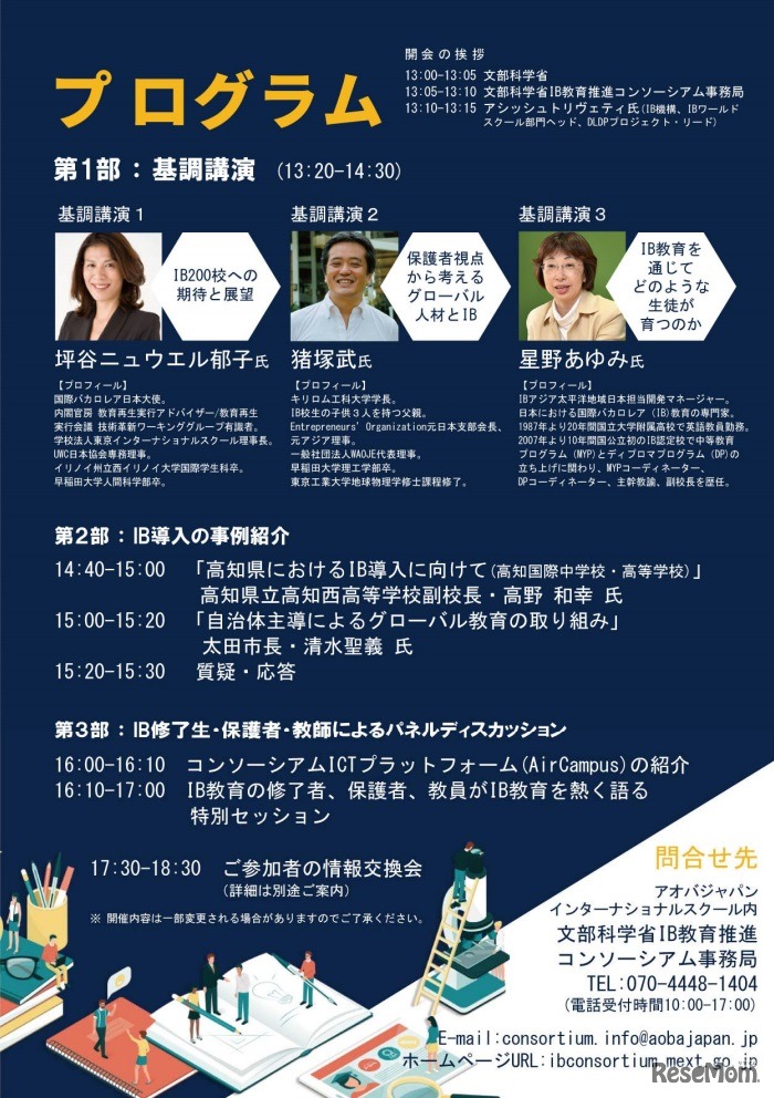 アオバジャパン・インターナショナルスクールは2018年10月14日、IB教育推進コンソーシアム第1回シンポジウムとして、「国際バカロレアに関する国内推進体制の整備事業シンポジウム2018」を開催する。参加無料。事前申込制。