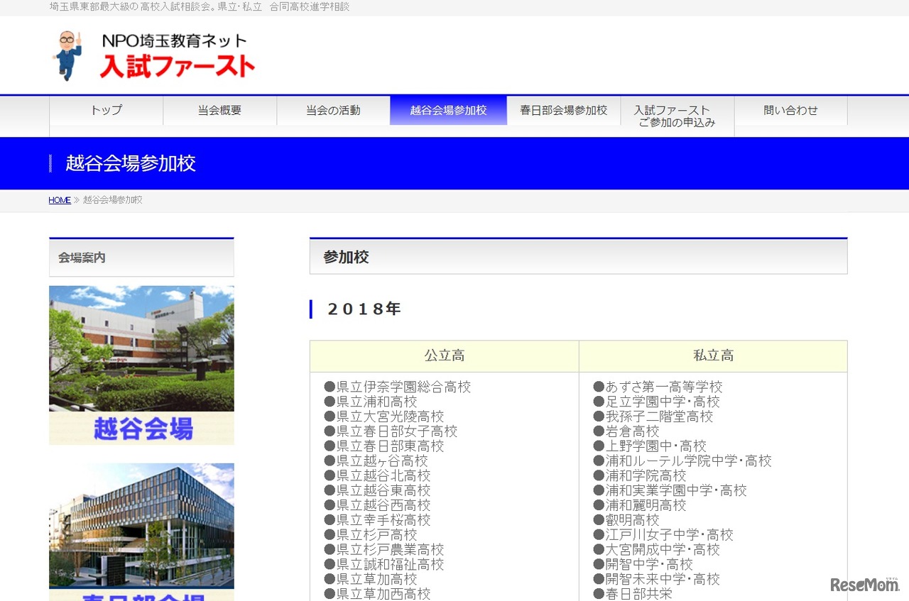 NPO埼玉教育ネットは2018年10月7日に越谷、10月20に春日部にて、受験生や中学1・2年生、保護者を対象に高校入試相談会「入試ファースト」を開催する。申込みは、Webサイトにて受け付けている。参加無料。
