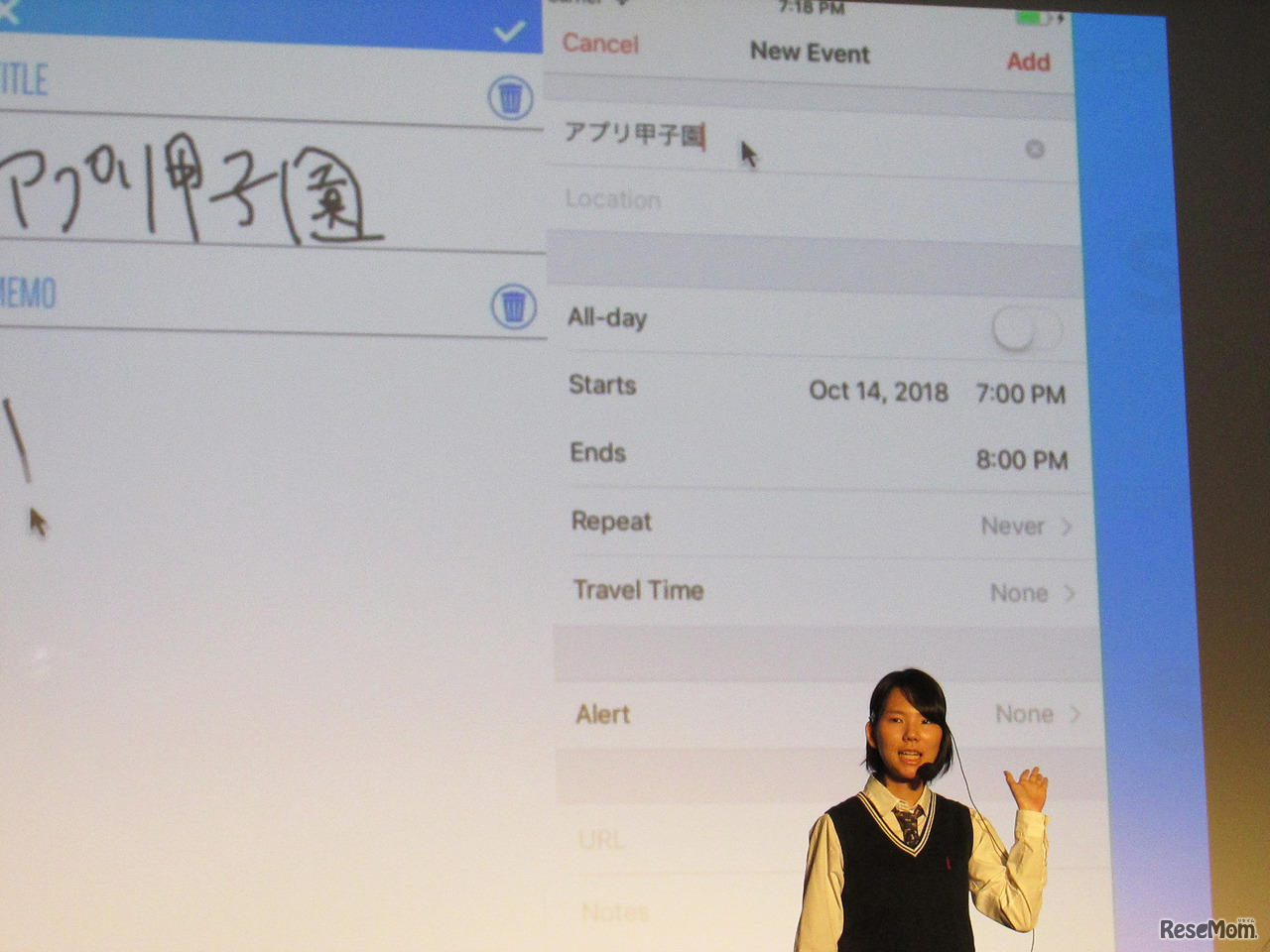 「SPEEDAY (スピーデイ)」の笠原未来さん/「アプリ甲子園2018」決勝大会のようす