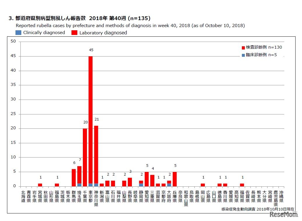 画像出典:国立感染症研究所 都道府県別病型別風しん報告数 2018年 第40週