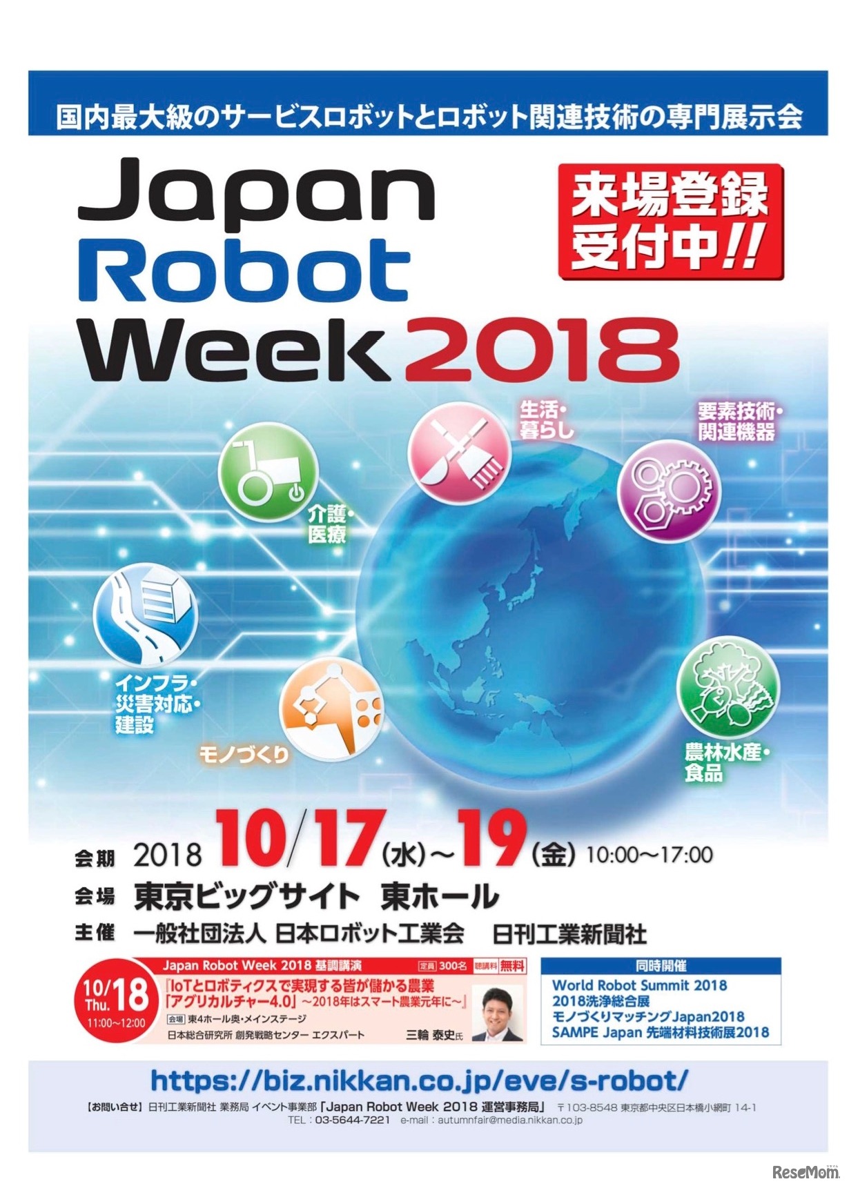 国土交通省や総務省、文部科学省、厚生労働省などが共催する「第8回ロボット大賞」の各省受賞ロボットが決定した。10月17日から21日に東京ビッグサイトで同時開催する「World Robot Summit 2018/Japan Robot Week 2018」の会場内にて、表彰式および合同展示を行う。