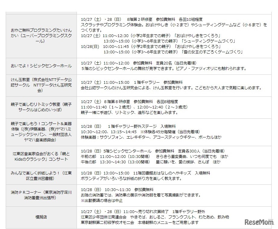江東区文化コミュ二ティ財団豊洲文化センターは2018年10月27日と28日、「第25回豊洲フェスタ」を開催する。豊洲周辺の企業・団体と協力し、無料コンサートや体験教室など、子どもから大人まで楽しめる多くの企画を用意する。参加無料。