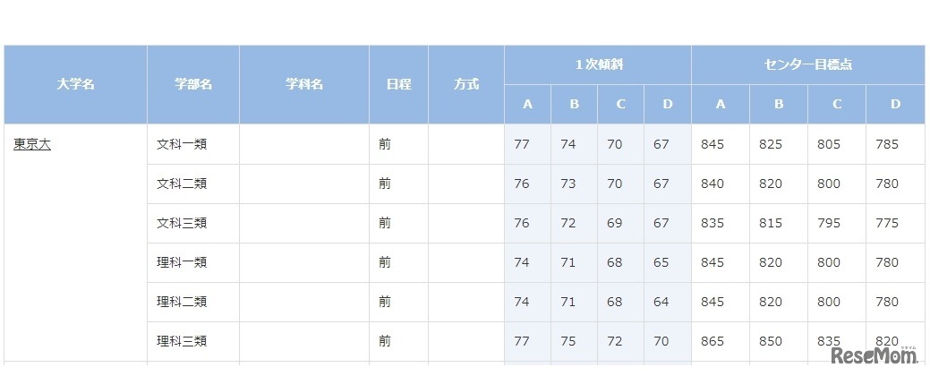 画像出典:ベネッセマナビジョン 合格可能性判定基準9月版(東京大学)