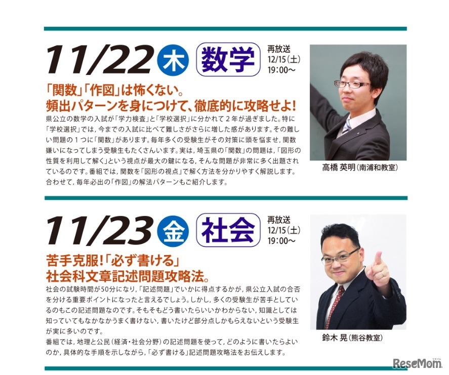 【高校受験2019】埼玉県公立入試の解説授業、テレ玉で11/16-29放送 3枚目の写真・画像