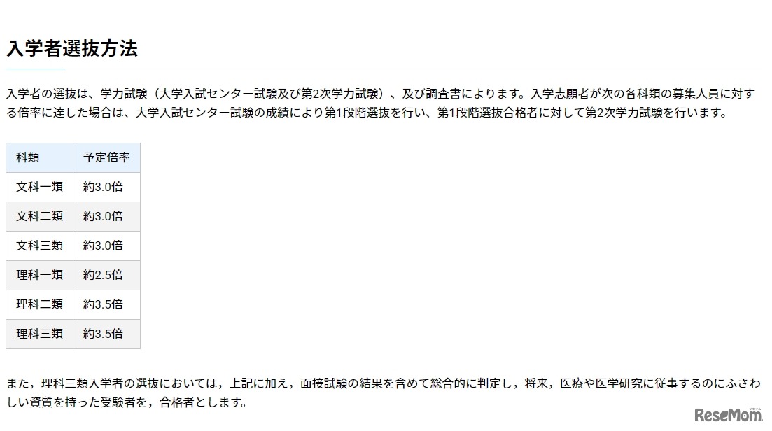 東京大学は、2019年度一般入試において、理科三類(医学部)の2段階選抜の予定倍率を約4.0倍から約3.5倍へ変更する。理科三類の面接試験に時間を要することから、2次受験者数を減らすためだという。