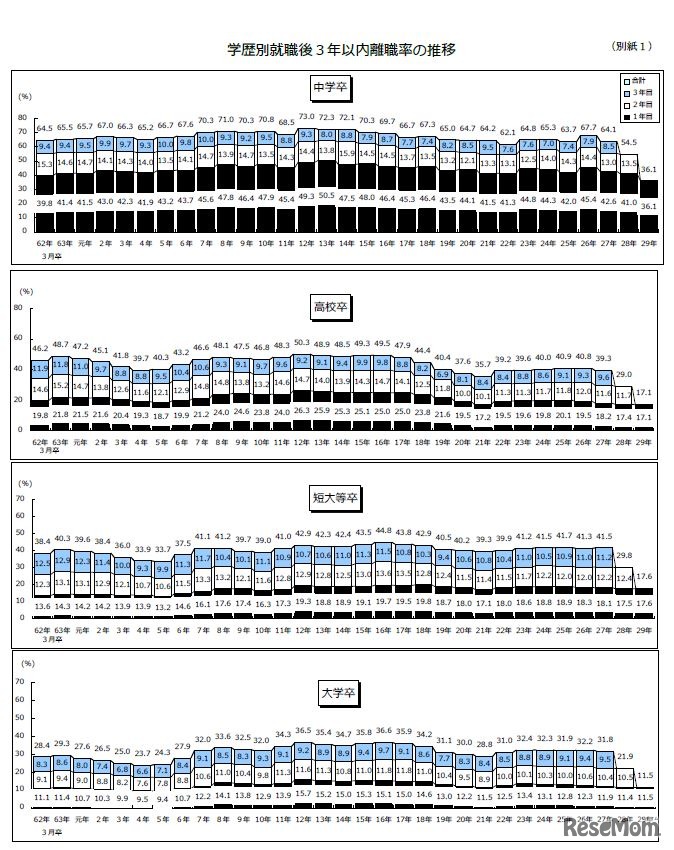 大卒3年以内離職率31.8%、事業所規模小さいほど上昇 4枚目の写真・画像