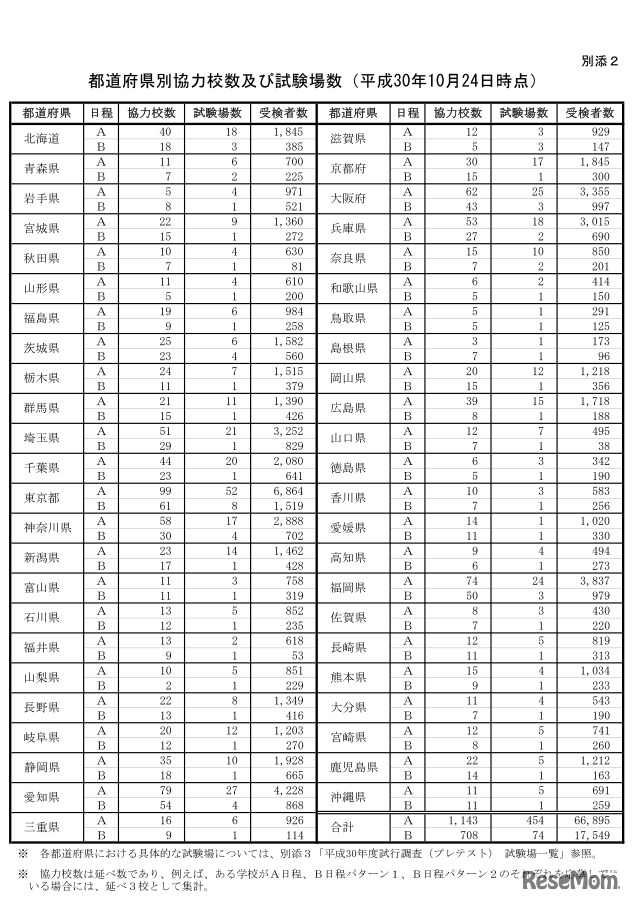 大学入試センターは、2020年度より導入する「大学入学共通テスト」の実施に向け、試行調査(プレテスト)を2018年11月10日と11日に実施する。全国の高校2年生以上を対象に実施し、8万4,444人が受検予定。