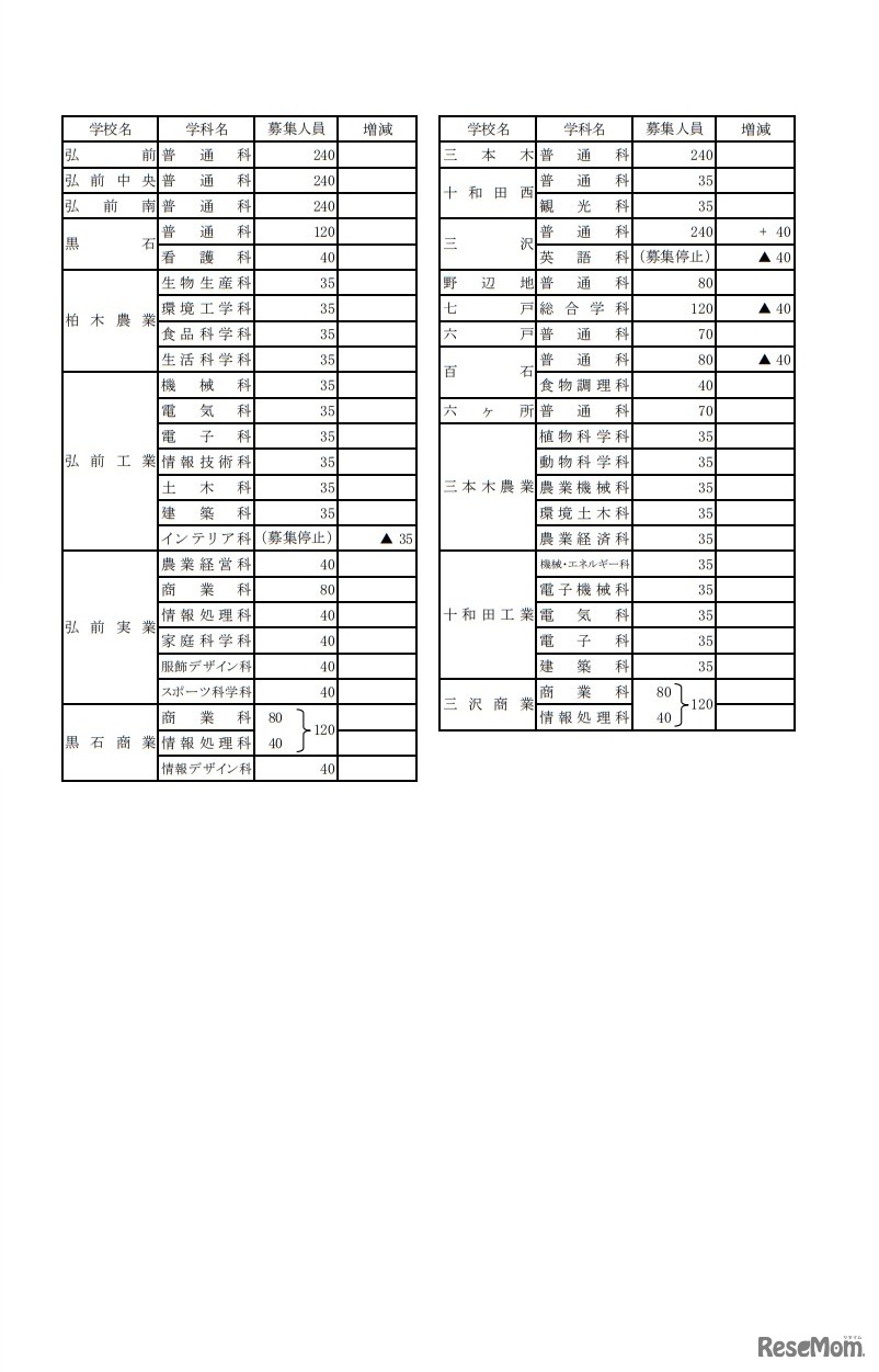 青森県教育委員会は2018年10月24日、平成31年度(2019年度)青森県立高等学校・中学校入学者募集人員を公表した。中学校卒業予定者数は1万1,250人と見込まれ、全日制は前年度比345人減の8,320人を募集する。青森県立三本木高等学校附属中学校の募集人員は80人。