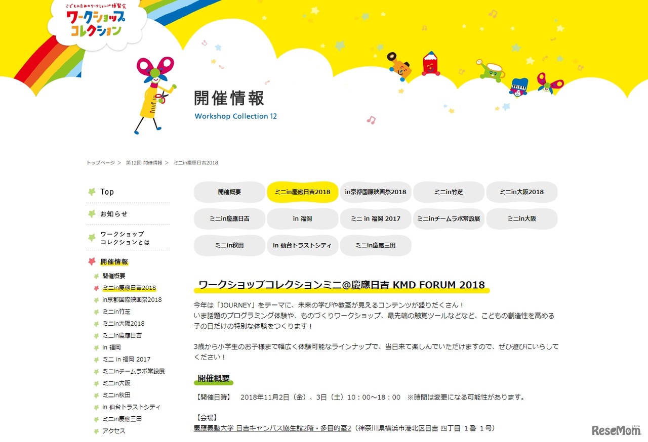 CANVASは、2018年11月2日と3日に慶應義塾大学日吉キャンパスで、「ワークショップコレクションミニ@慶應日吉 KMD FORUM 2018」を開催する。ワークショップは3歳から小学生まで体験できる。入場は無料。
