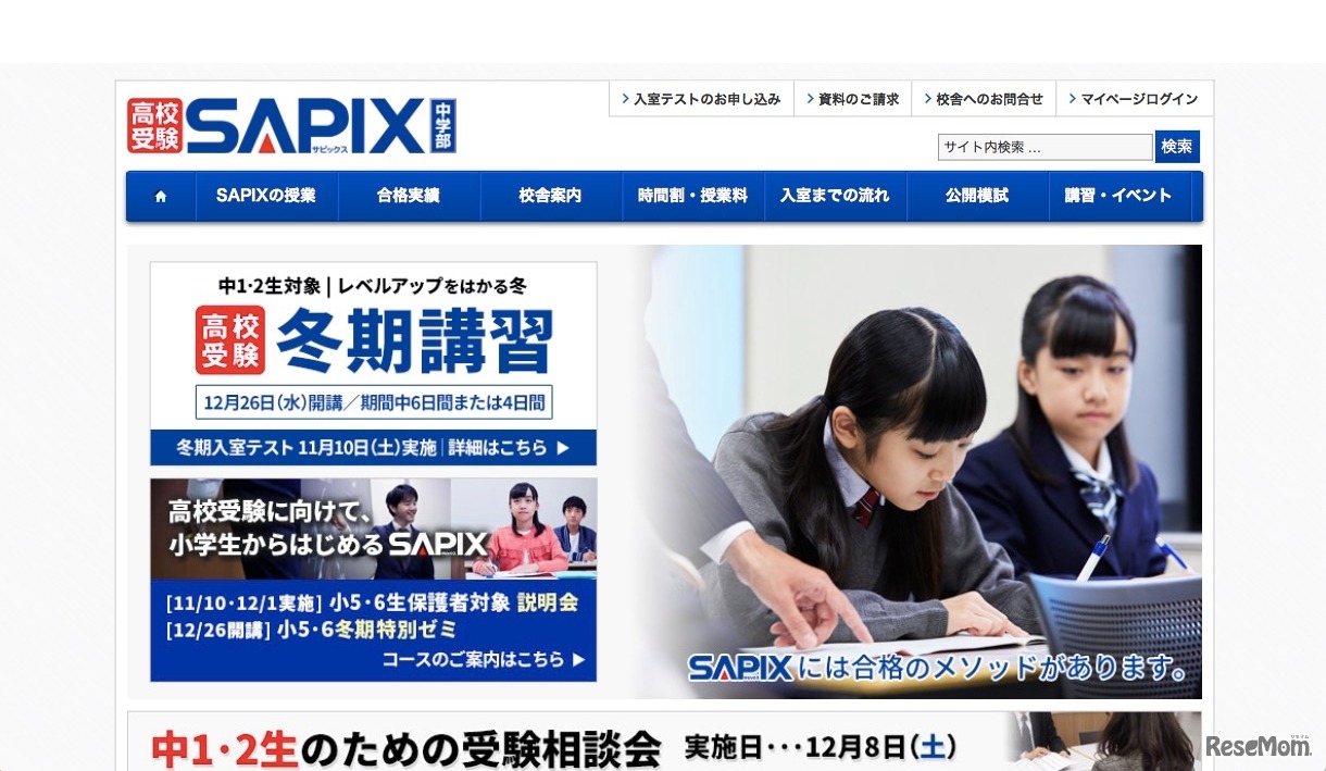【高校受験】SAPIX、中1・2生のための受験相談会12/8…英数診断テスト付 2枚目の写真・画像