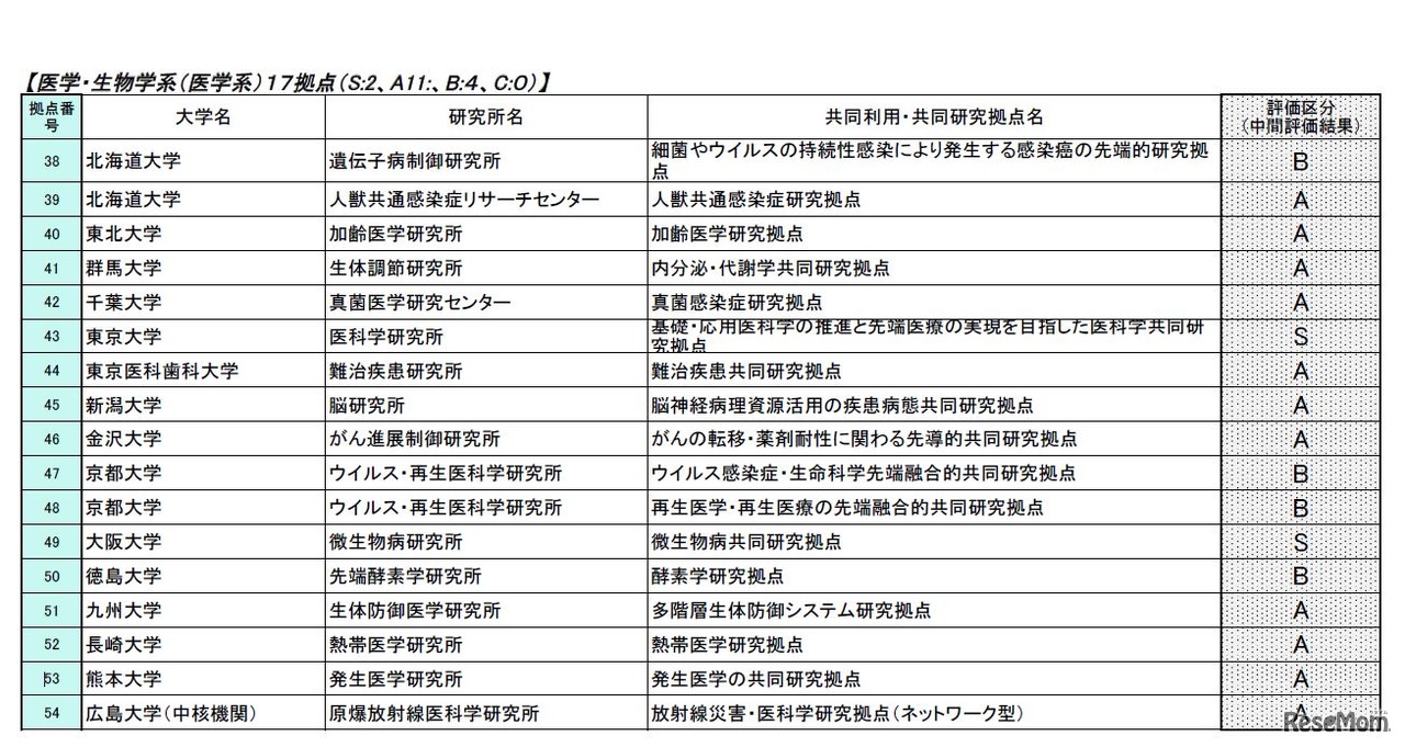 文部科学省は平成30年10月30日、国立大学の共同利用・共同研究拠点の中間評価結果(平成30年度実施)を公表した。国立大学の77拠点を対象に中間評価を行った結果、最上位のS評価は東京大学、大阪大学、東北大学、京都大学、一橋大学の共同利用・共同研究拠点11拠点とした。