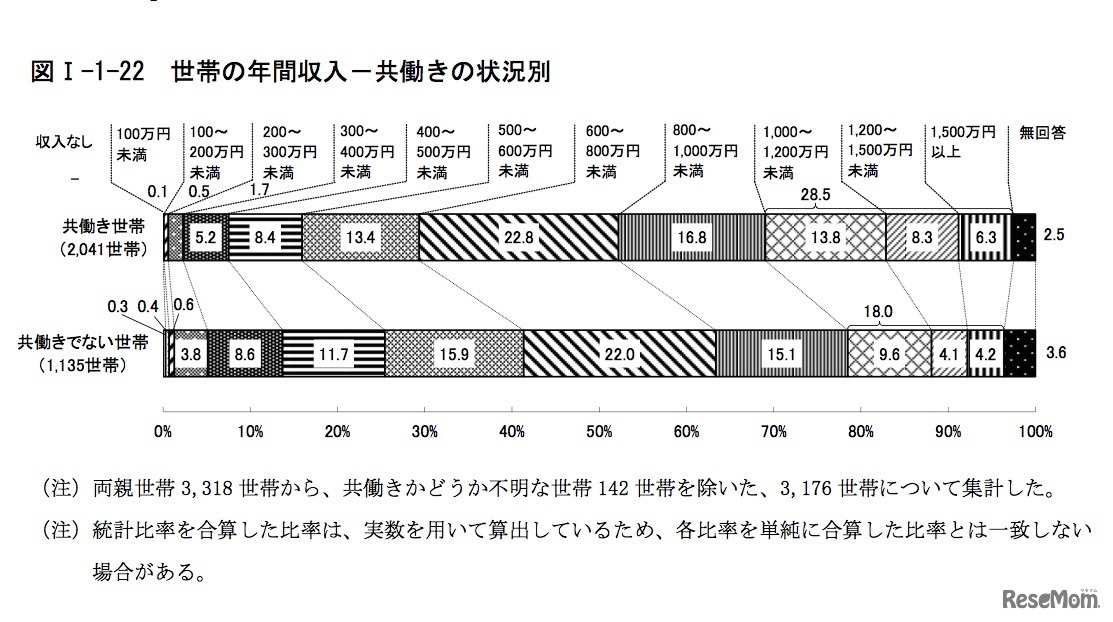 東京都は2018年10月31日、2017年度東京都福祉保健基礎調査「東京の子供と家庭」の結果を報告書にまとめ、公表した。小学生までの子どもがいる共働き世帯の割合は、前回調査より7.7ポイント増の61.5%となり、世帯年収は「1,000万円以上」が28.5%を占めた。
