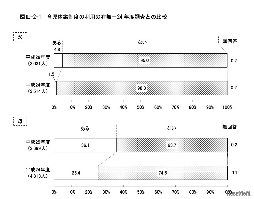 画像出典:東京都 平成29年度東京都福祉保健基礎調査「東京の子供と家庭」 育児休業制度の利用の有無