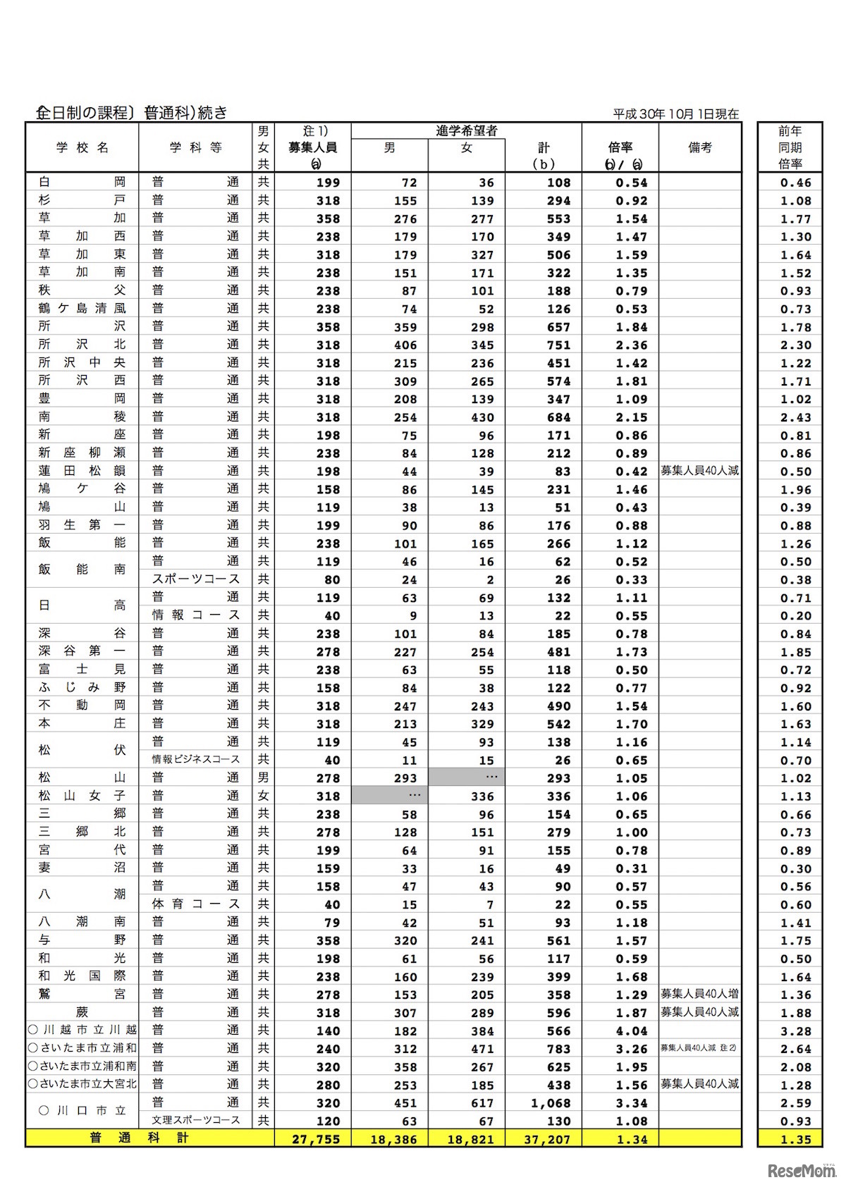 【高校受験2019】埼玉県進路希望状況調査・倍率(10/1現在)大宮・理数2.43倍 4枚目の写真・画像