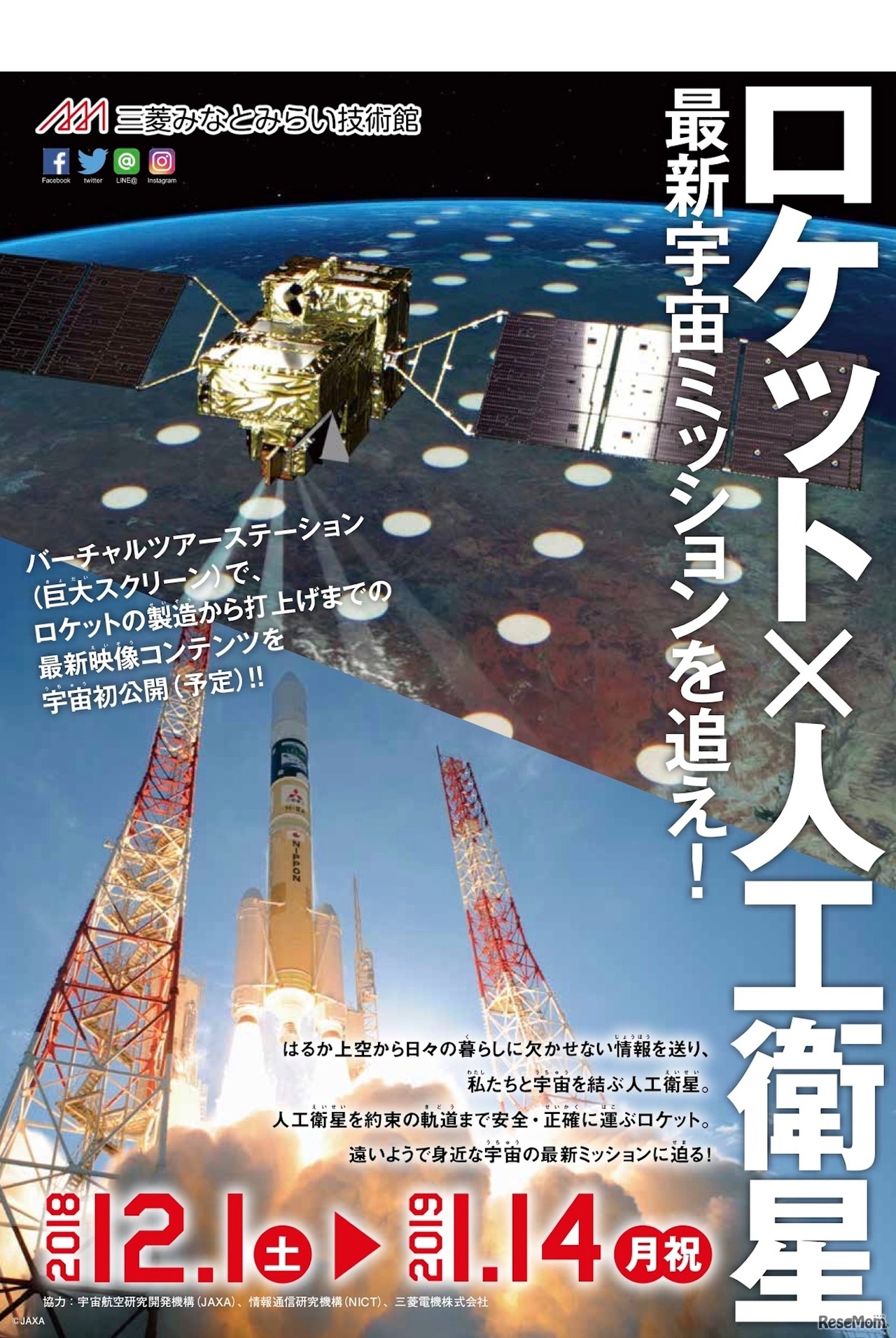 三菱みなとみらい技術館は2018年12月1日から2019年1月14日まで、企画展「ロケット×人工衛星-最新宇宙ミッションを追え!-」を開催する。特別展示のほか、JAXAスタッフのスペシャルイベント、小学生も楽しめるサイエンスショーなど盛りだくさんのプログラムが催される。