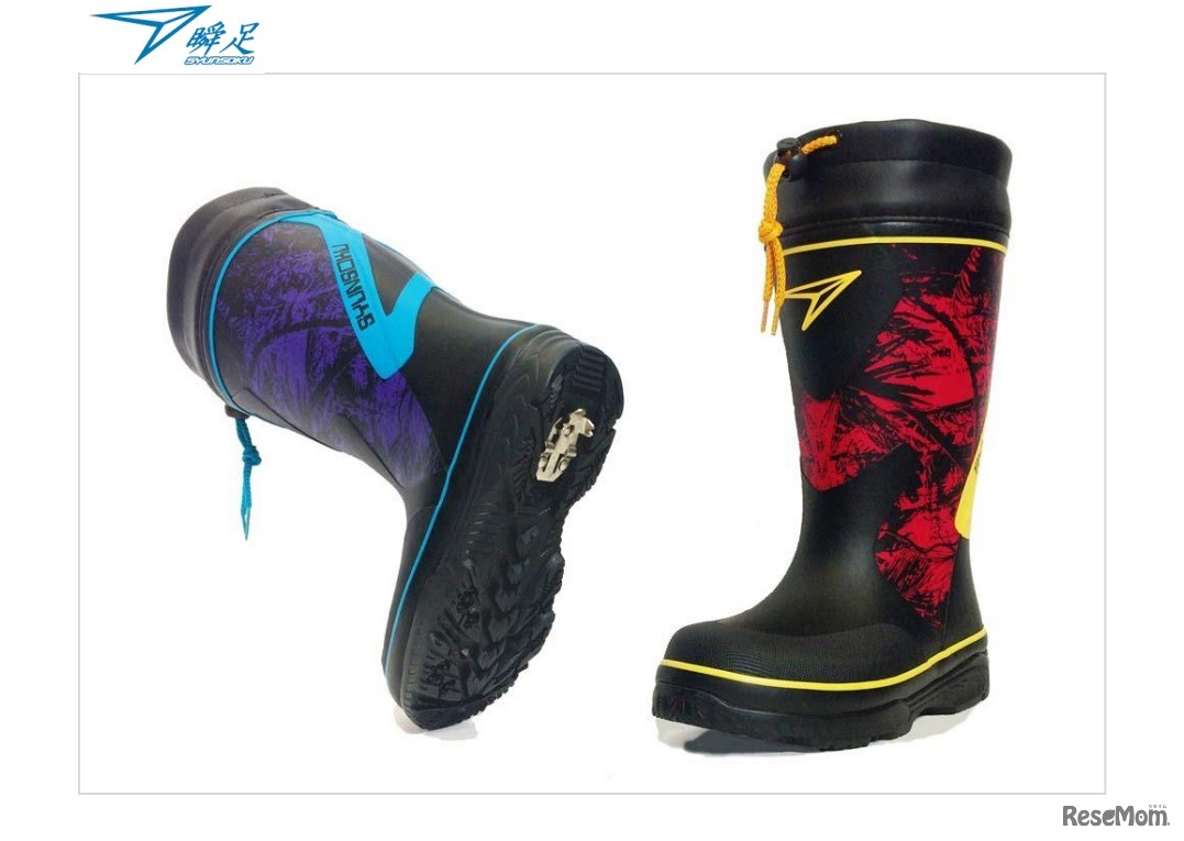 アキレスは2018年11月中旬、ジュニア用スポーツシューズブランド「瞬足」から積寒地の路面変化に配慮した反転式のスパイク付防寒長靴「瞬足JB-765」を発売する。価格は5,000円(税別)。