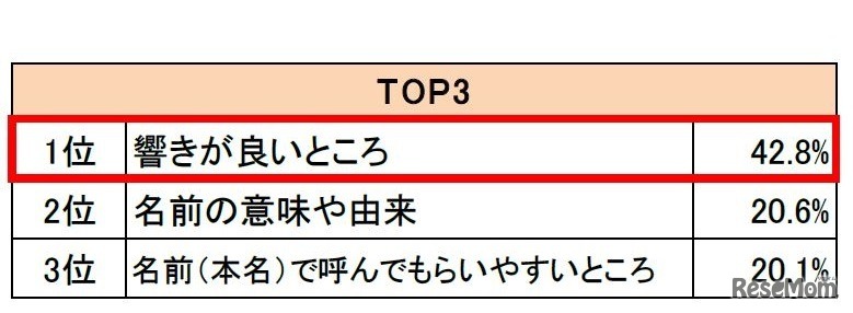 画像出典:バンダイこどもアンケート 「響き」を重視した親の子どもに聞いた、自分の名前で気に入っているところ