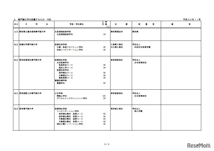 文部科学省は2018年11月7日、10月末に申請のあった平成32年度(2020年度)開設予定の大学等の設置認可申請について公表した。大学は私立4校、専門職大学および専門職短期大学は公立2校、私立18校の計20校の設置認可申請があった。