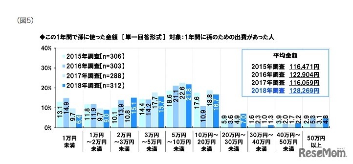 この1年間で孫のために使った金額は平均12万8,269円、2017年より1万2,210円増加していることが、ソニー生命保険の「シニアの生活意識調査2018」からわかった。また、孫に勉強を教えたいと考えるシニアは、女性より男性のほうが多かった。