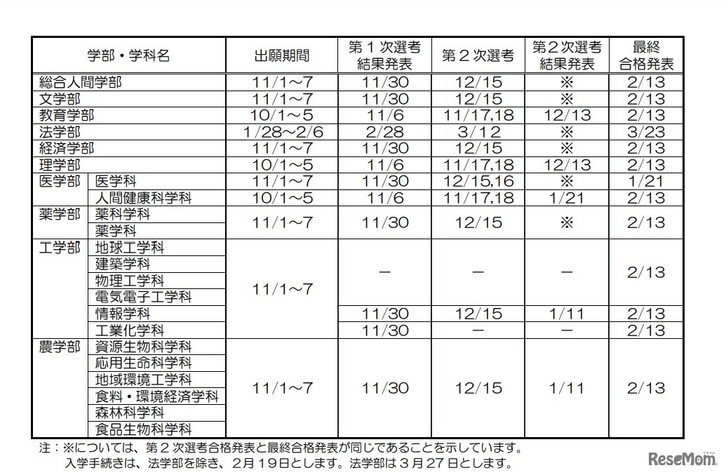京都大学は2018年11月16日、2019年度特色入試の出願受付状況(最終)を発表した。最終出願倍率は、総合人間学部が7.0倍、文学部が5.6倍、経済学部が3.8倍、医学部医学科が2.8倍、薬学部薬学科が1.7倍、工学部地球工学科が4.7倍、農学部資源生物科学科が7.7倍など。