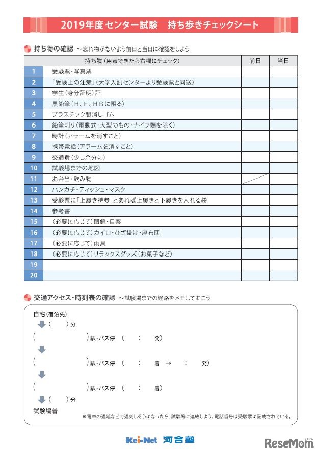 【センター試験2019】Kei-Netが受験ガイド、持ち物チェックシートも 2枚目の写真・画像