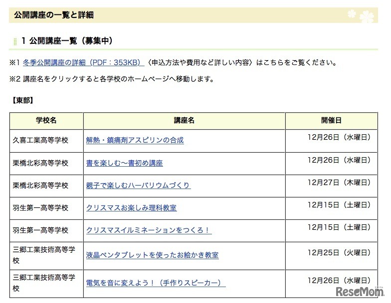 画像出典:埼玉県教育委員会 募集中の2018年度冬季公開講座一覧・東部