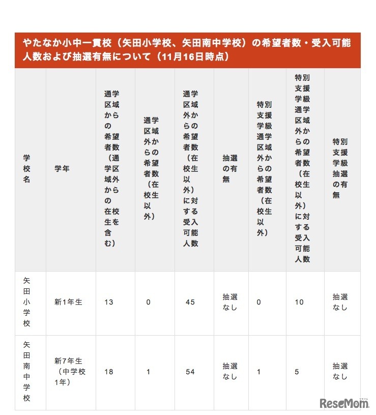 大阪市は2018年11月30日、市内小中一貫校5校の平成31年度(2019年度)児童生徒募集における最終希望調査結果および公開抽選の実施について公表した。公開抽選を行うのは、小中一貫校むくのき学園の啓発小学校、咲洲みなみ小中一貫校の南港みなみ小学校と南港南中学校。