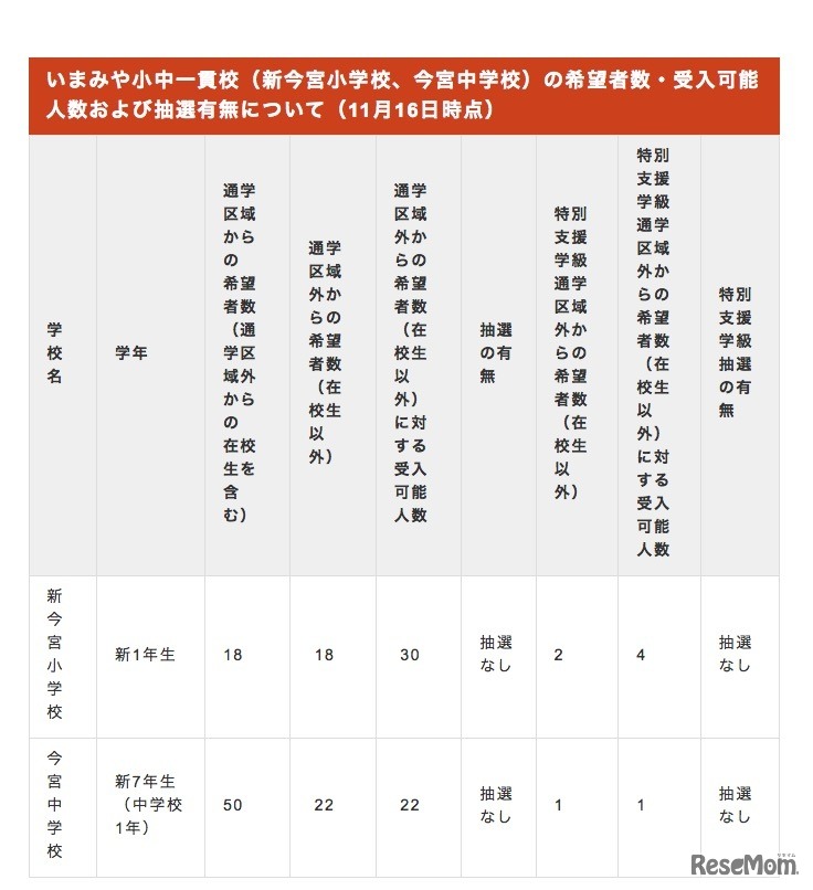 大阪市は2018年11月30日、市内小中一貫校5校の平成31年度(2019年度)児童生徒募集における最終希望調査結果および公開抽選の実施について公表した。公開抽選を行うのは、小中一貫校むくのき学園の啓発小学校、咲洲みなみ小中一貫校の南港みなみ小学校と南港南中学校。