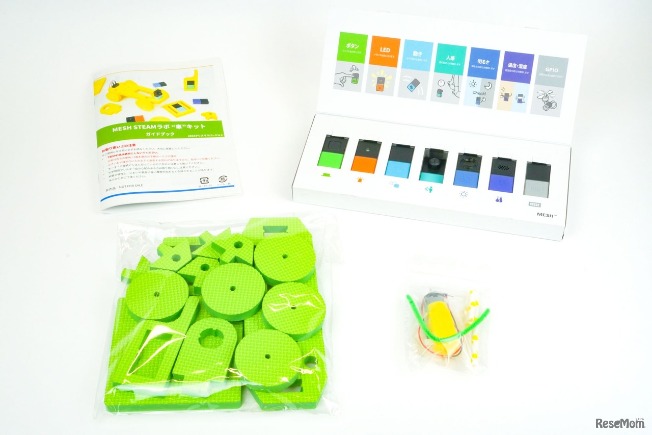 ソニーは2018年12月3日より、IoTプログラミングキット「MESH(メッシュ)」のアドバンスセットに、車をつくるためのパーツとガイドブックを同梱した「MESHクリスマスギフトセット」を数量限定で販売する。価格は3万7,980円(税込)。