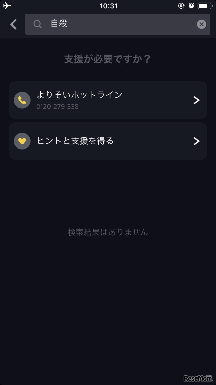 TikTok検索機能でネガティブワードを検索すると、相談窓口がリコメンドされる仕組み