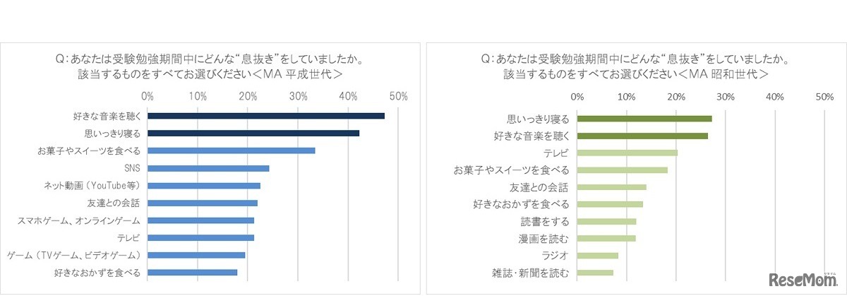 画像出典:タイムカレント 受験勉強期間中、どのような息抜きをしていたか