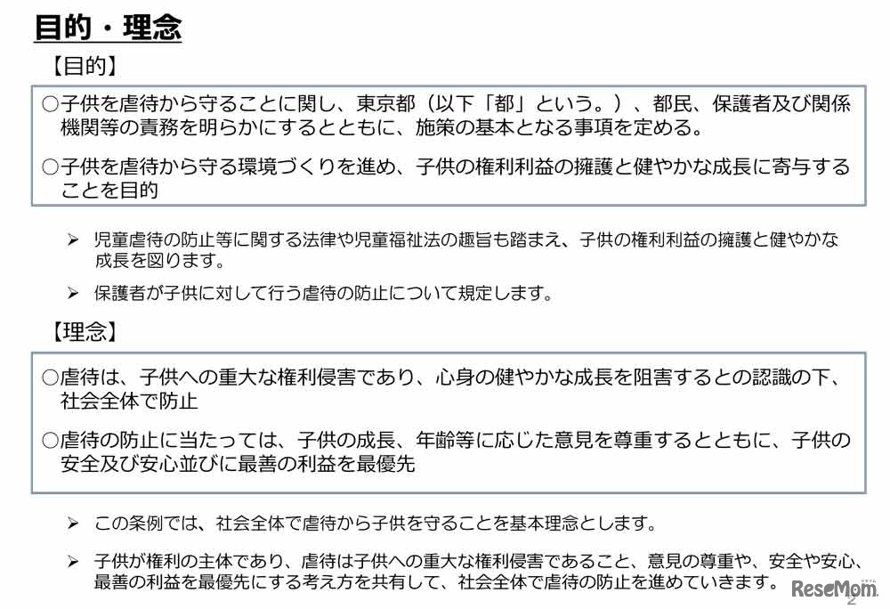 東京都は2018年11月30日、「東京都子供への虐待の防止等に関する条例(仮称)」の骨子案を取りまとめ、発表した。同時に都民からの意見の募集を開始した。意見募集期間は2018年12月29日までで、郵送の場合は当日消印有効。