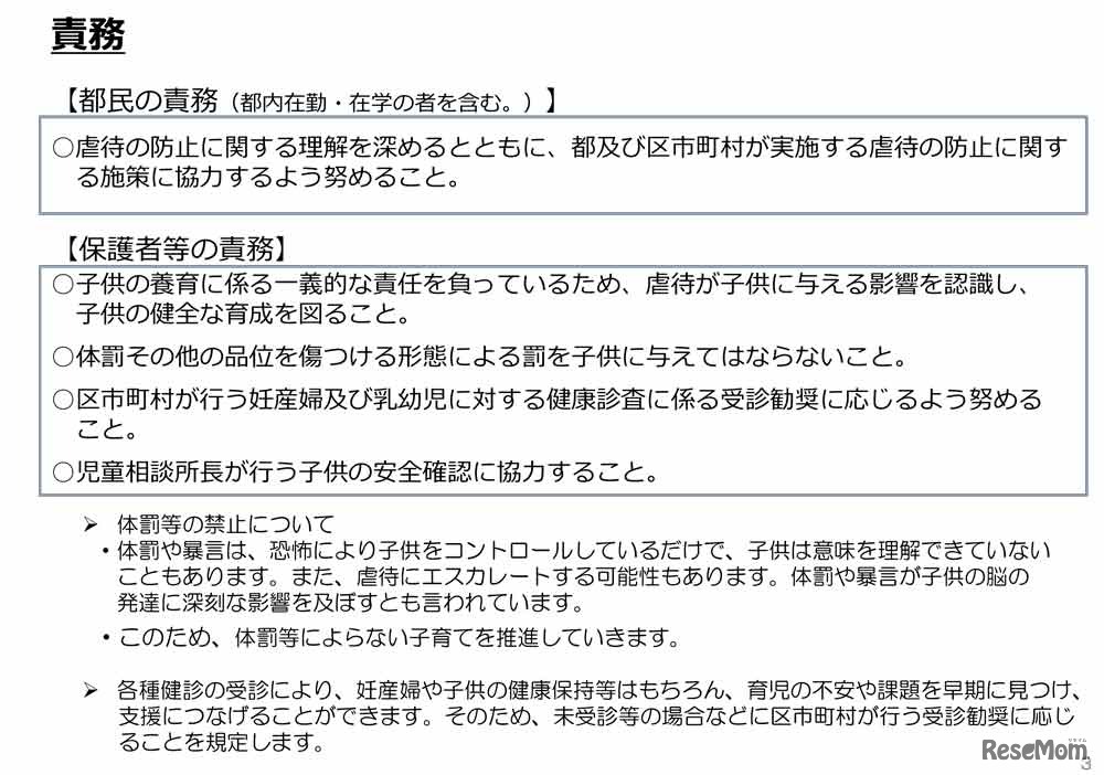画像出典:東京都 「東京都子供への虐待の防止等に関する条例(仮称)」の骨子案:責務