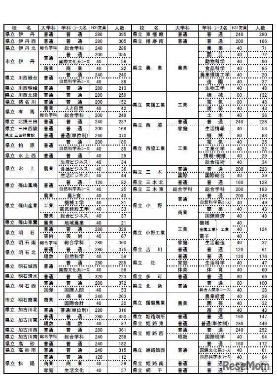 【高校受験2019】兵庫県公立高校進学希望調査・倍率(11/10時点)、兵庫(創造科学)2.8倍など 3枚目の写真・画像