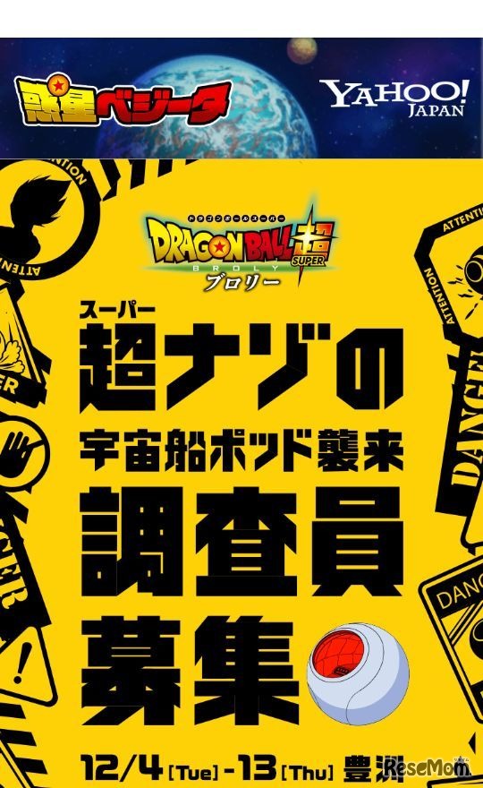 東映アニメーションは、映画「ドラゴンボール超ブロリー」の公開を記念して、2018年12月4日から12月13日まで謎の宇宙船ポッドの調査員を募集している。搭乗予約は当日、現地で受け付ける。無料参加。