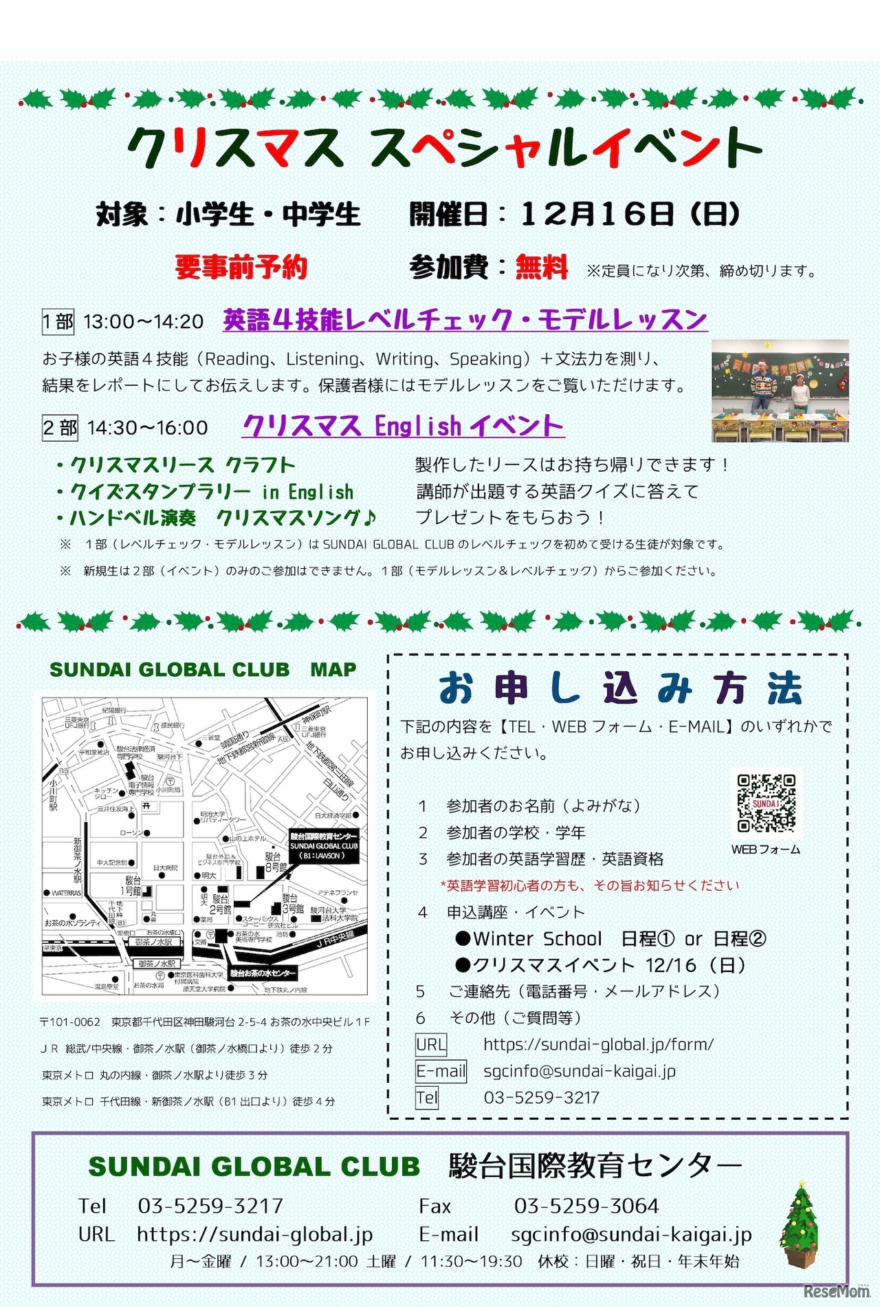 駿台、英語を学ぶ小中学生対象「無料クリスマスイベント」12/16 1枚目の写真・画像