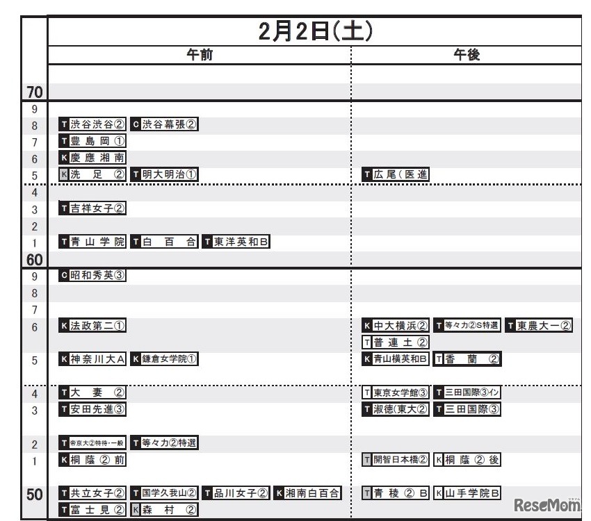 画像出典:日能研「2019年入試に向けて予想したR4偏差値一覧」 首都圏11月20日版 女子2月2日
