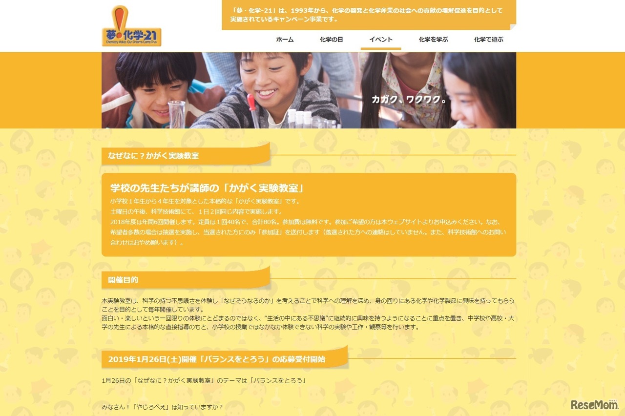 「夢・化学-21」委員会は2019年1月26日、小学生1年生から4年生を対象とした「なぜなに?かがく実験教室」を開催する。今回のテーマは「バランスをとろう」。参加無料。応募締切は2018年12月20日。