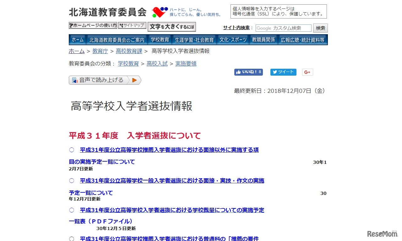 北海道教育委員会:高等学校入学者選抜情報