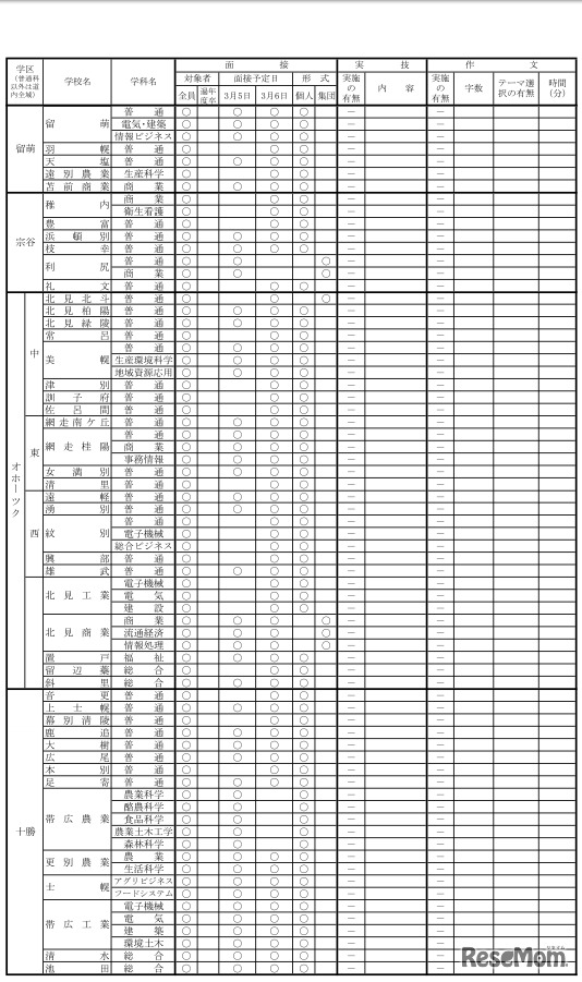 北海道教育委員会は2018年12月7日、2019年度公立高校一般入学者選抜における面接・実技・作文の実施予定を発表した。また、公立高校推薦入学者選抜における面接以外に実施する項目についても公表した。