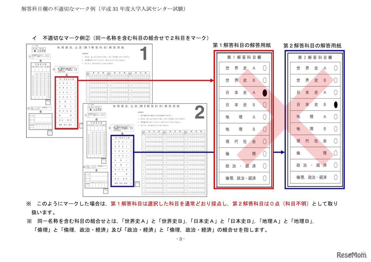 大学入試センターは2018年12月7日、平成31年度(2019年度)試験情報に「受験上の注意」「試験問題冊子の注意事項等について」「解答科目欄の不適切なマーク例」を掲載した。センター試験を受験するにあたり、気をつけなければならない注意事項をまとめている。