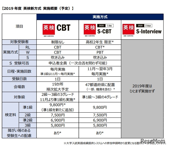 日本英語検定協会は2018年12月7日、2019年度の英検新方式の実施概要を速報として発表した。高校2年生を対象とした「英検2020 1 day S-CBT」は、2019年11月から2020年3月まで毎月実施。検定料は2級が7,500円(税込)。