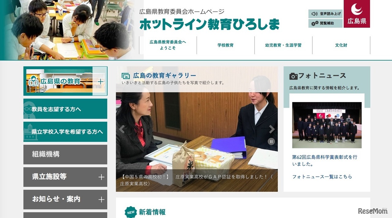 広島県の県立高等学校では、保護者の転勤などによる県外などからの出願のほか、全国から募集を行う「特定校」で県外からの出願を受け付けている。県教育委員会は2018年12月7日、Webサイトに2019年度入学者選抜の特定校8校の一覧と各校のPRポイントを掲載した。
