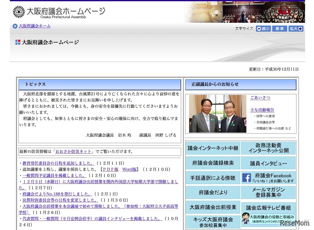 大阪府議会は2018年12月10日、「大阪府子どもの受動喫煙防止条例」を可決した。居住者や通勤・通学をする者、大阪府を通過する者に対して、住居や学校、通学路、病院などの公共的な空間において、子どもに受動喫煙をさせないよう努めることは社会全体の責務と明記した。